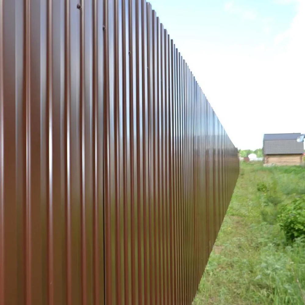 Покрытие полиэстер наносится на стальную основу профлиста, обеспечивая защиту от коррозии и ультрафиолета. Толщина слоя обычно составляет 25 мкм, что гарантирует стойкость к атмосферным воздействиям. Цвет RAL 8017, известный как "коричневый шоколад", придает материалу теплый, насыщенный оттенок, идеально вписывающийся в природные ландшафты или классические архитектурные стили. Это покрытие устойчиво к выцветанию, царапинам и механическим повреждениям, сохраняя внешний вид на протяжении многих лет. В отличие от более дорогих аналогов, полиэстер экономичен, но требует аккуратного обращения при монтаже, чтобы избежать сколов.